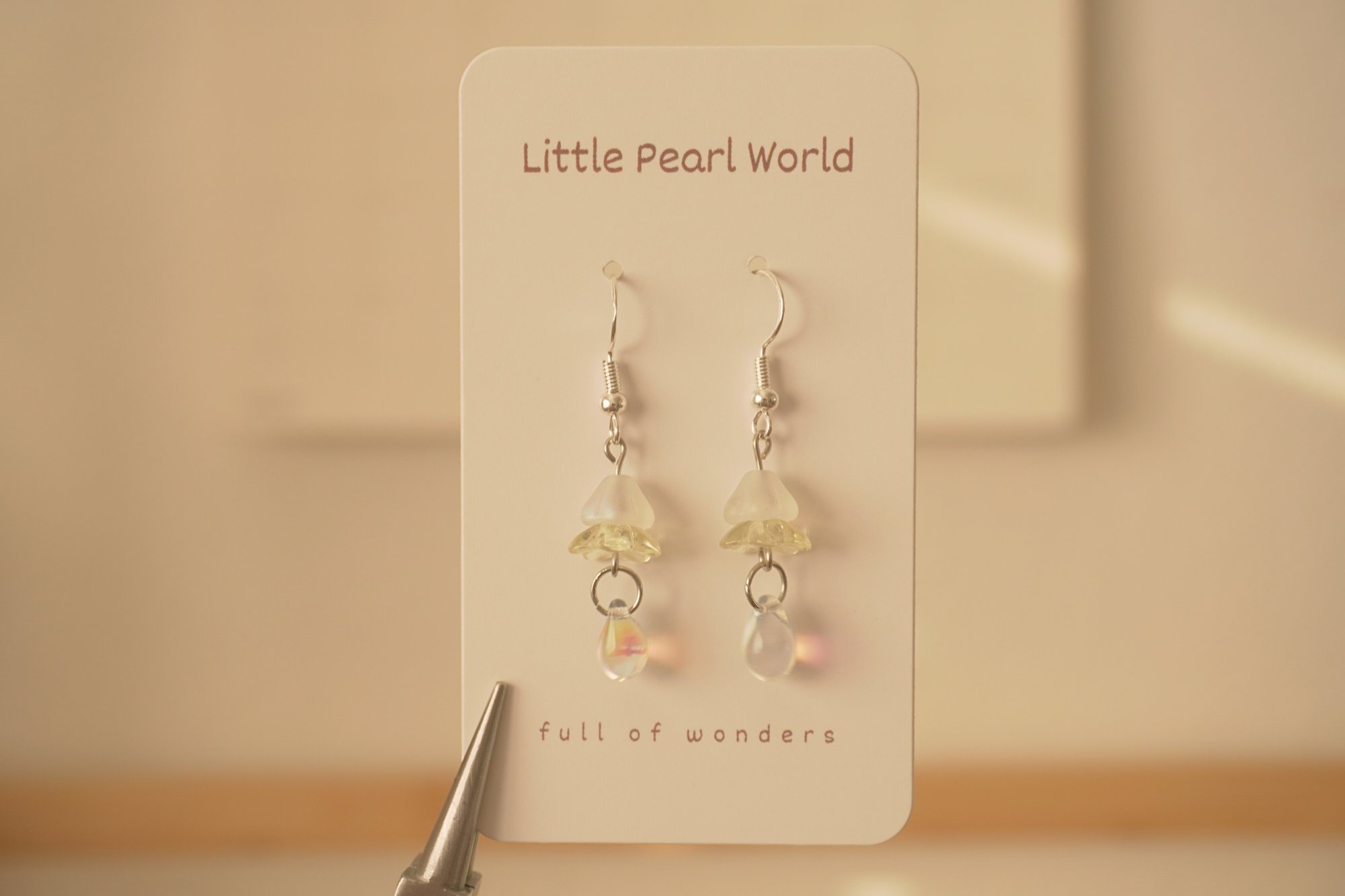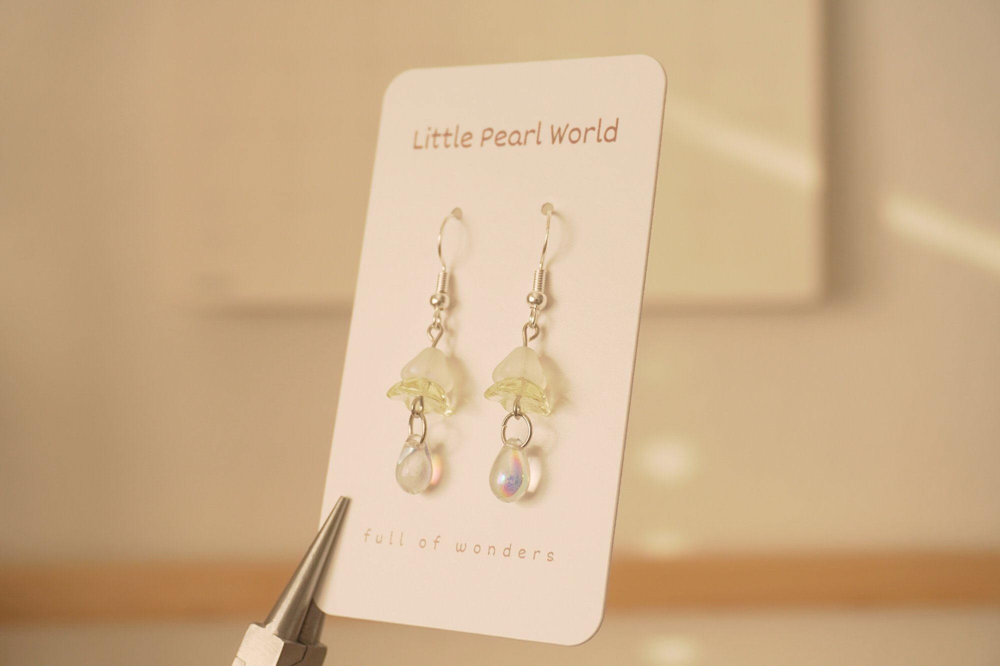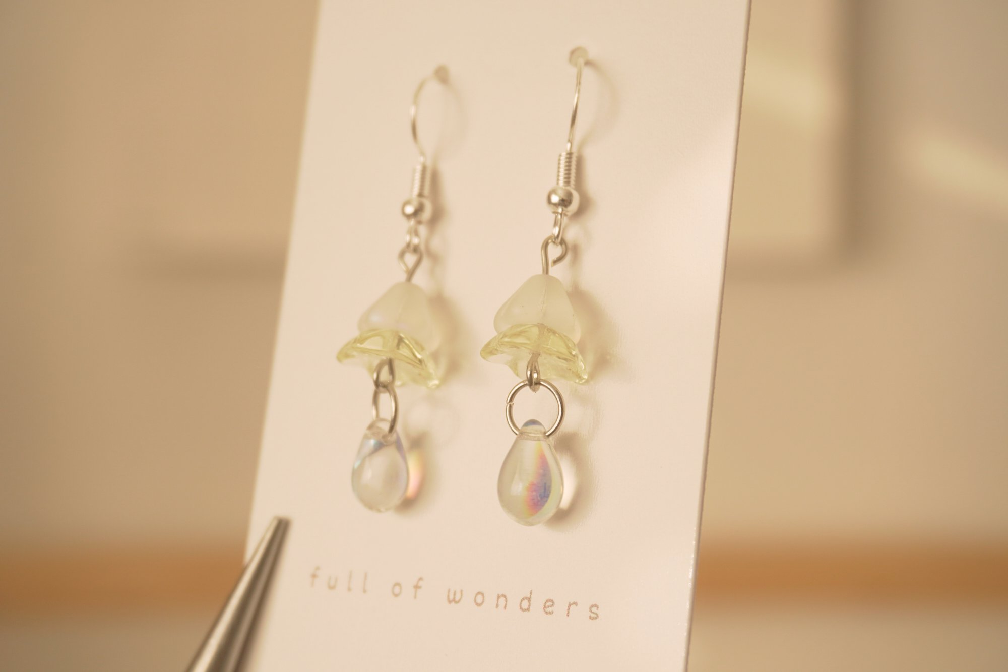 my earrings are handmade with unique Czech flowers and raindrop glass beads